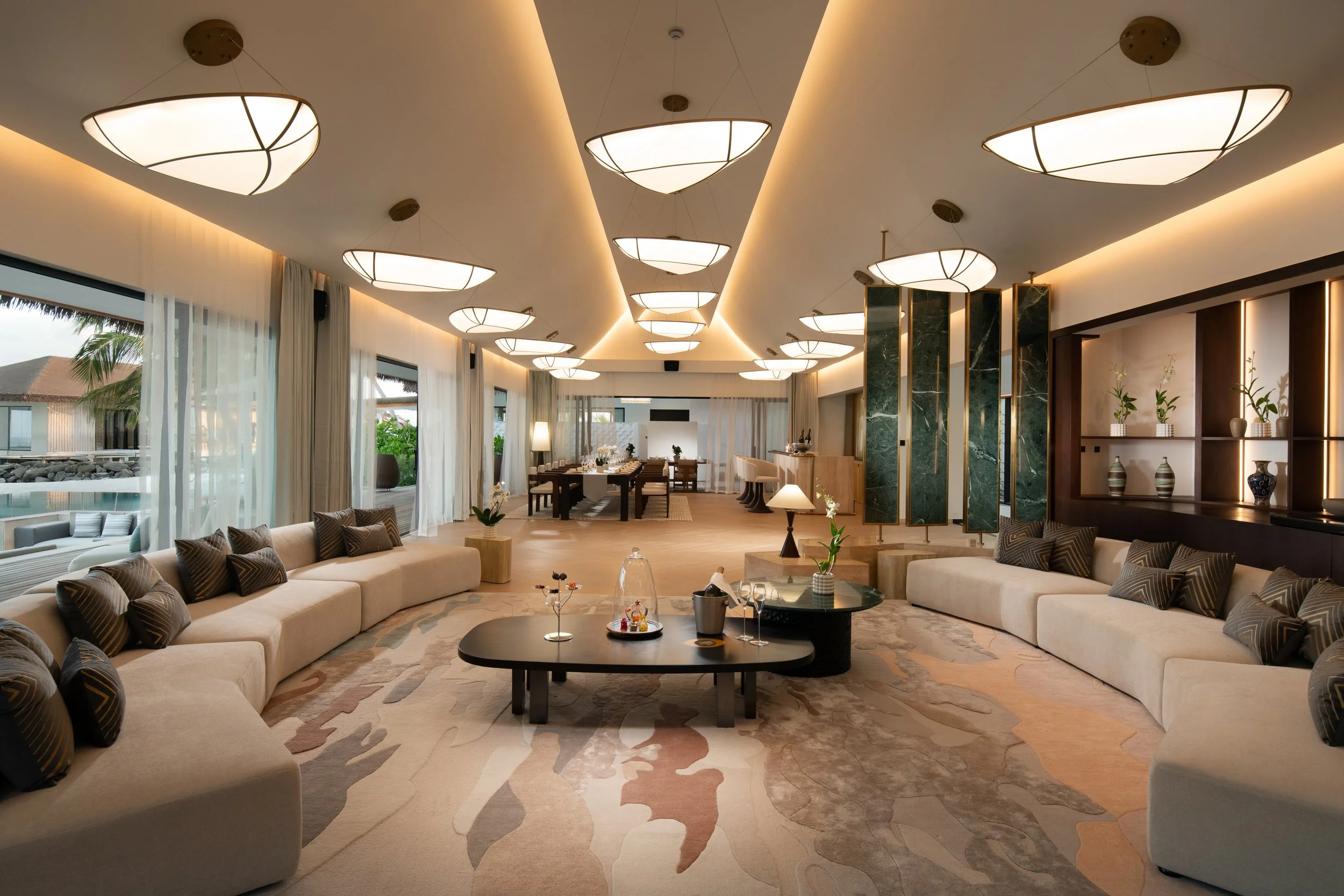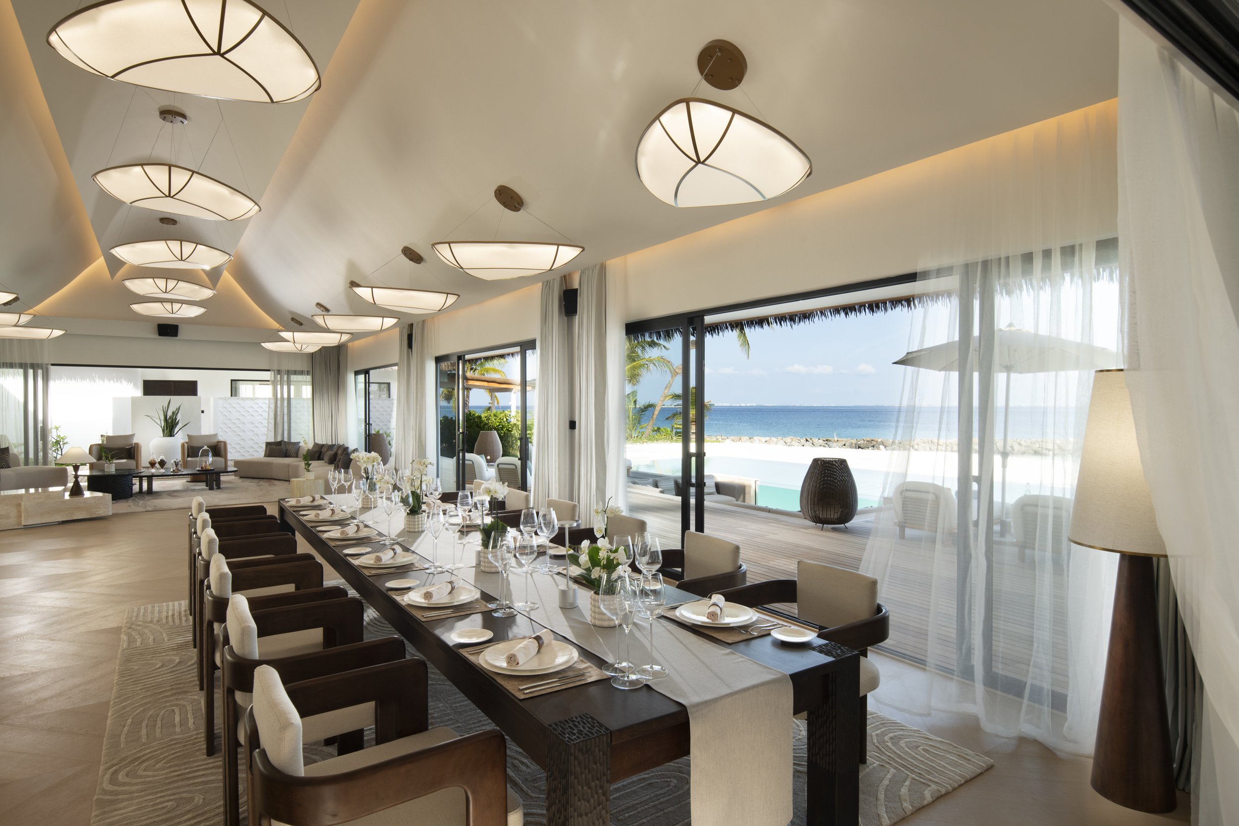 Newly launched, The Residence invites with a private welcome; a six-bedroom sanctuary redefining luxury living in the Maldives with unrivalled privacy, elegance and indulgent island experiences. The Residence introduces a new expression of Maldivian grandeur, where contemporary elegance flows effortlessly into the rhythm of island life in an expansive 4,000sqm of thoughtful design. Nestling in the southwest of North Malé Atoll and only a 20-minute scenic speedboat journey from Malé International Airport with its own dedicated pier, Amingiri Residence encompasses six beautifully appointed bedrooms for up to twelve guests in a most private sanctuary designed for both celebration and serenity, with every detail crafted to elevate the art of escape. From exquisite King master suites with indulgent en-suite facilities, enjoying their own pools and jacuzzis, to Guest Experience Makers and Culinary Artists, guests immerse in a world of refined pleasures of sweeping beaches, glistening pool, a glass-walled overwater lounge enjoying panoramic ocean views and thoughtfully curated spaces for dining, wellness and play.