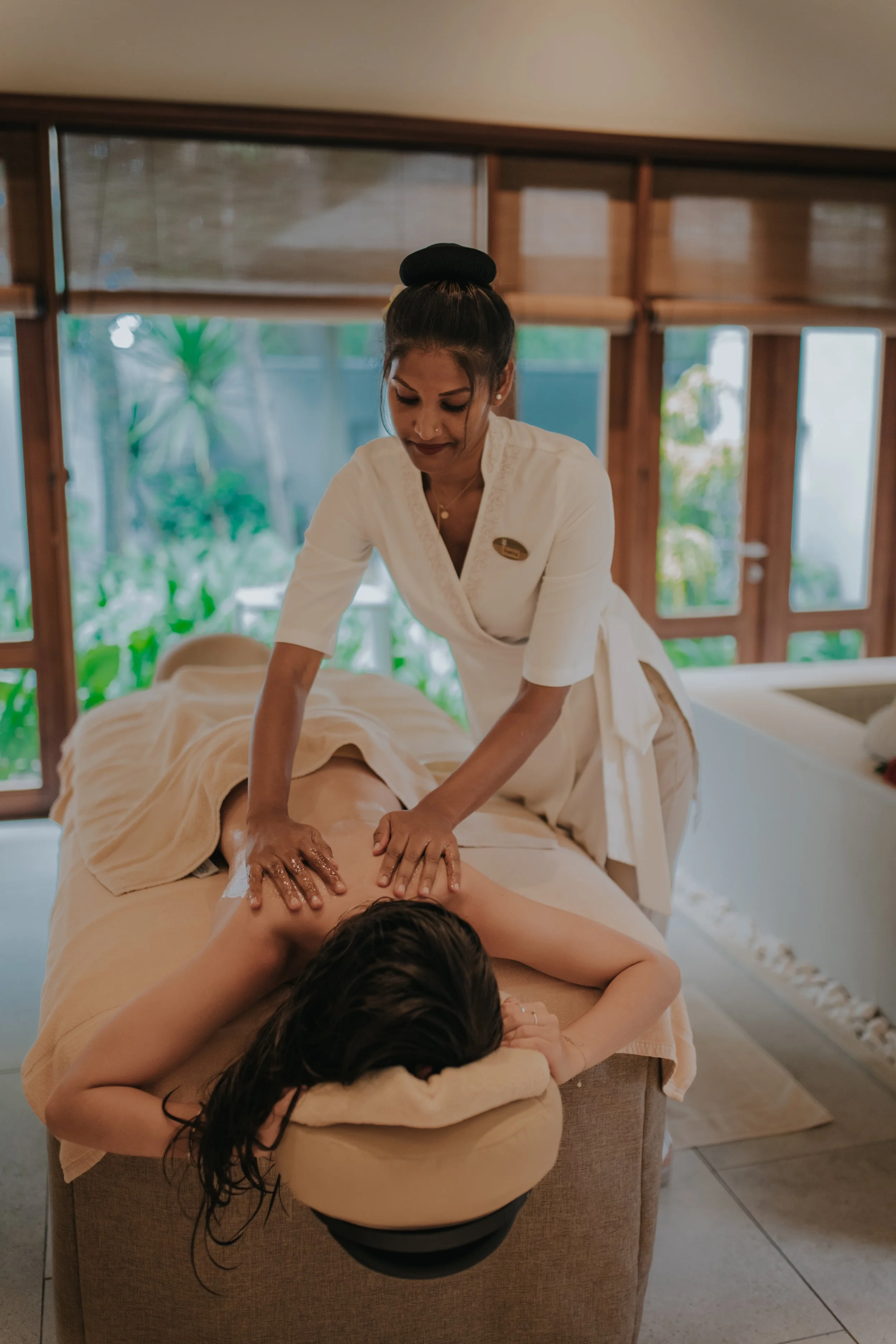 In Maradiva’s gardens the award-winning Ayurvedic Spa beckons as a sanctuary of stillness, where body and spirit reunite. Six serene rooms encircle an interior garden and pool, offering therapies rooted in Ayurveda’s 6,000-year-old wisdom. Guided by an in-house Ayurvedic doctor, guests discover healing rituals, yoga, meditation and bespoke treatments with pure oils. Here, cuisine, wellness and tradition converge, creating a cocoon of harmony, renewal, and inner peace. The Spa also features a fully-fledged beauty salon offering bio nail treatments, lash extensions, hair care, and facials for him, her as well as some treatments available for kids. Facilities include a jacuzzi, laconium, sauna, hammam and chill pool. The separately appointed Fitness Centre overlooks lush gardens and features a cardio area, a weight training zone and two tennis courts with daylight lighting. A personal coach is available upon request.